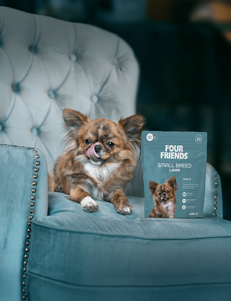 Lammprotein 43 % (torkat lamm 28 %, färskt lamm 15 %), ärtor, kycklingfett, bovete, torkad äppelmassa, kikärtor, hydrolyserad kycklinglever, laxolja, linfrö, bryggerijäst, alger (Ascophyllum nodosum), ärtmjöl, glukosamin, kondroitinsulfat, mannan-oligosackarider, frukto-oligosackarider, yucca schidigera, torkad mariatistel, inulin, torkad salvia, torkad rosmarin, torkad kamomill, torkad kryddnejlika, torkade citrusfrukter, torkad havtorn, torkad gurkmeja.
